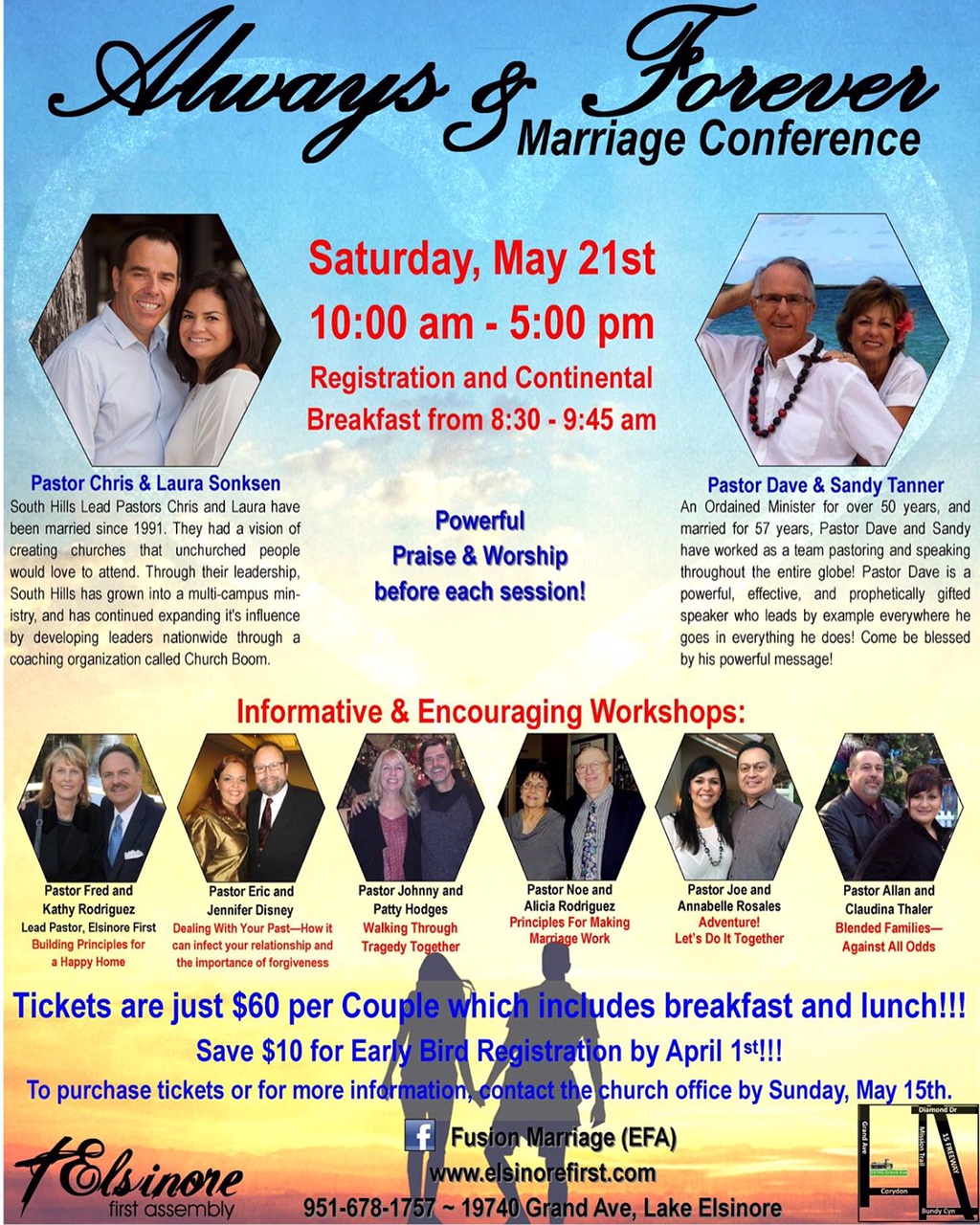 Eric A. Disney (Pastor/Author/Counselor) (Marriage by Design) and his wife, Jennifer L. Disney (Educator/Author/Master Life Coach and Recovery Specialist) (Up From the Ashes) will have the honor of presenting hope and healing to marriages at these upcoming events!